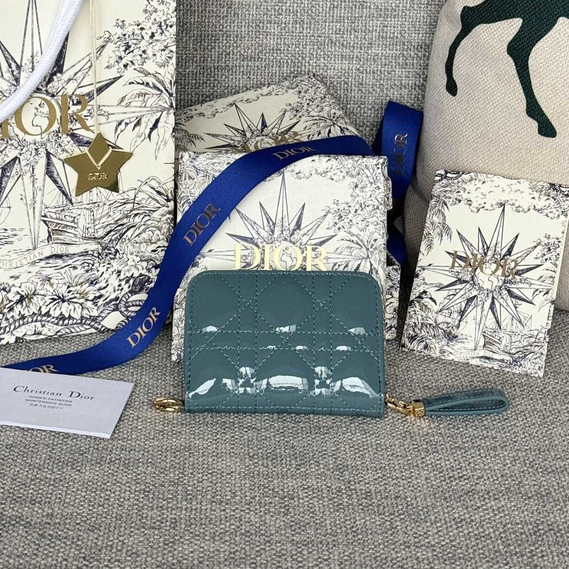 CD Logo Caro 11cm Compact Wallet Shiny Teal Calfskin