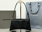 CRUSH SHOULDER BAG 25 IN BLACK CRUSHED CALFSKIN LEATHER STRAP SILVER HARDWARE