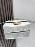 Fend Baguette 24 Bag With FF Motif White Leather Ghw