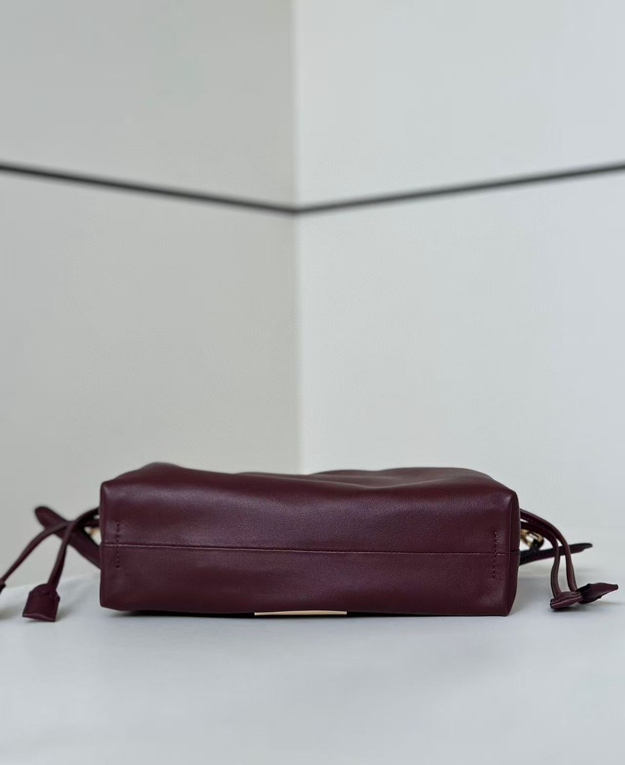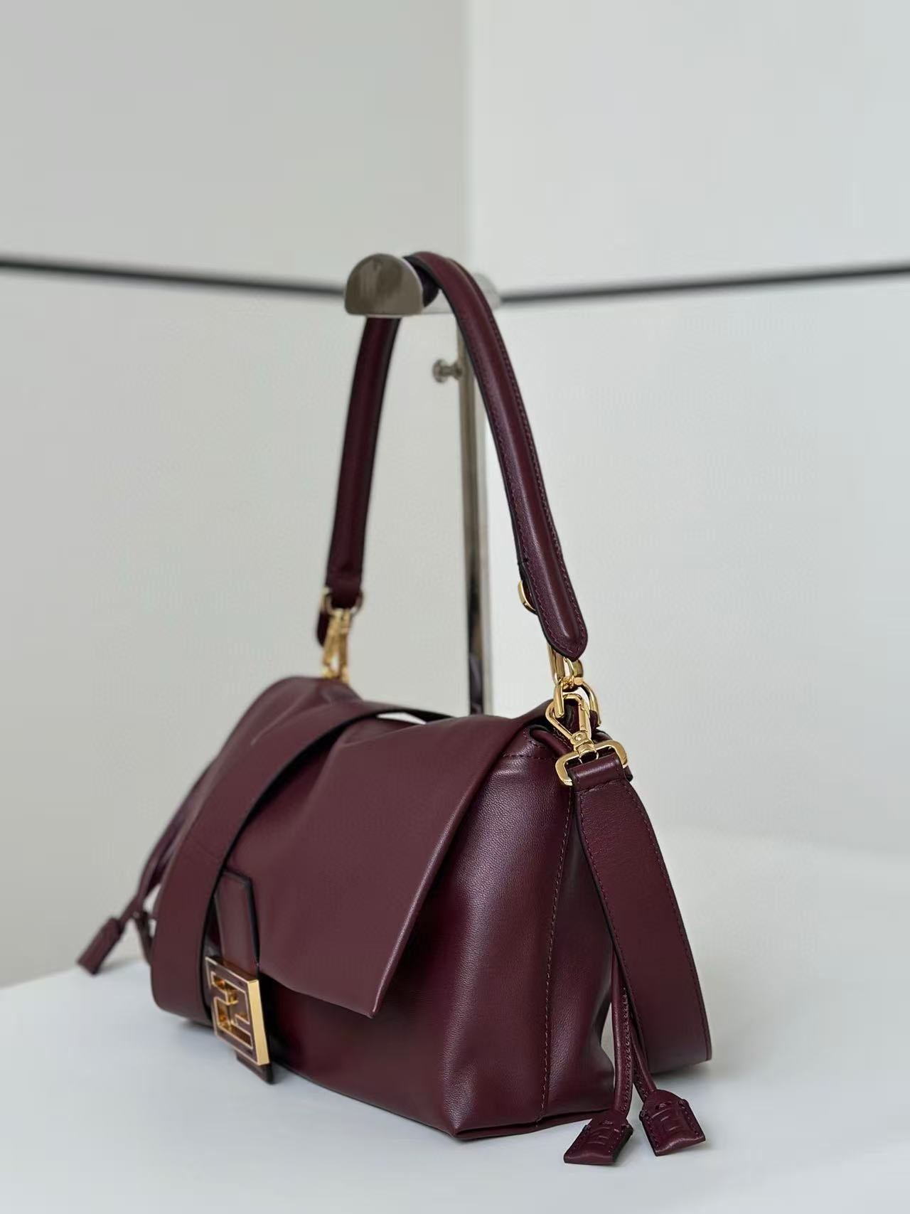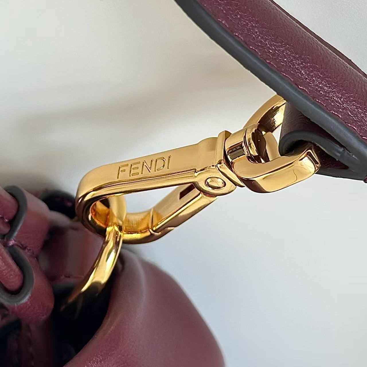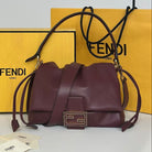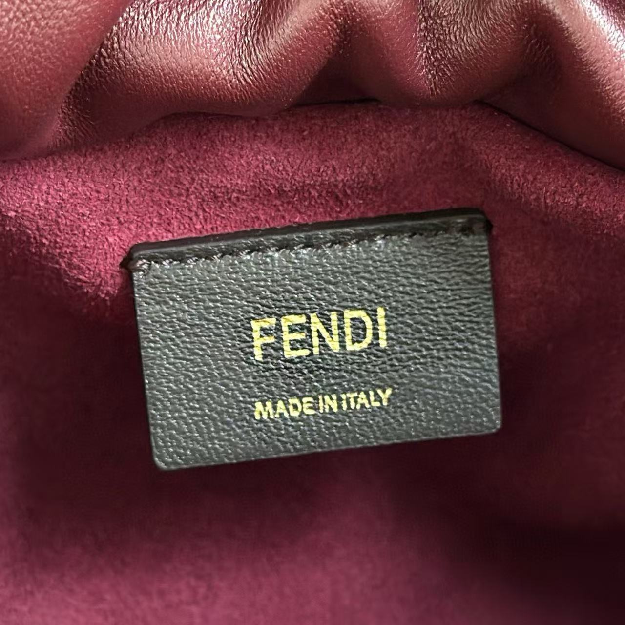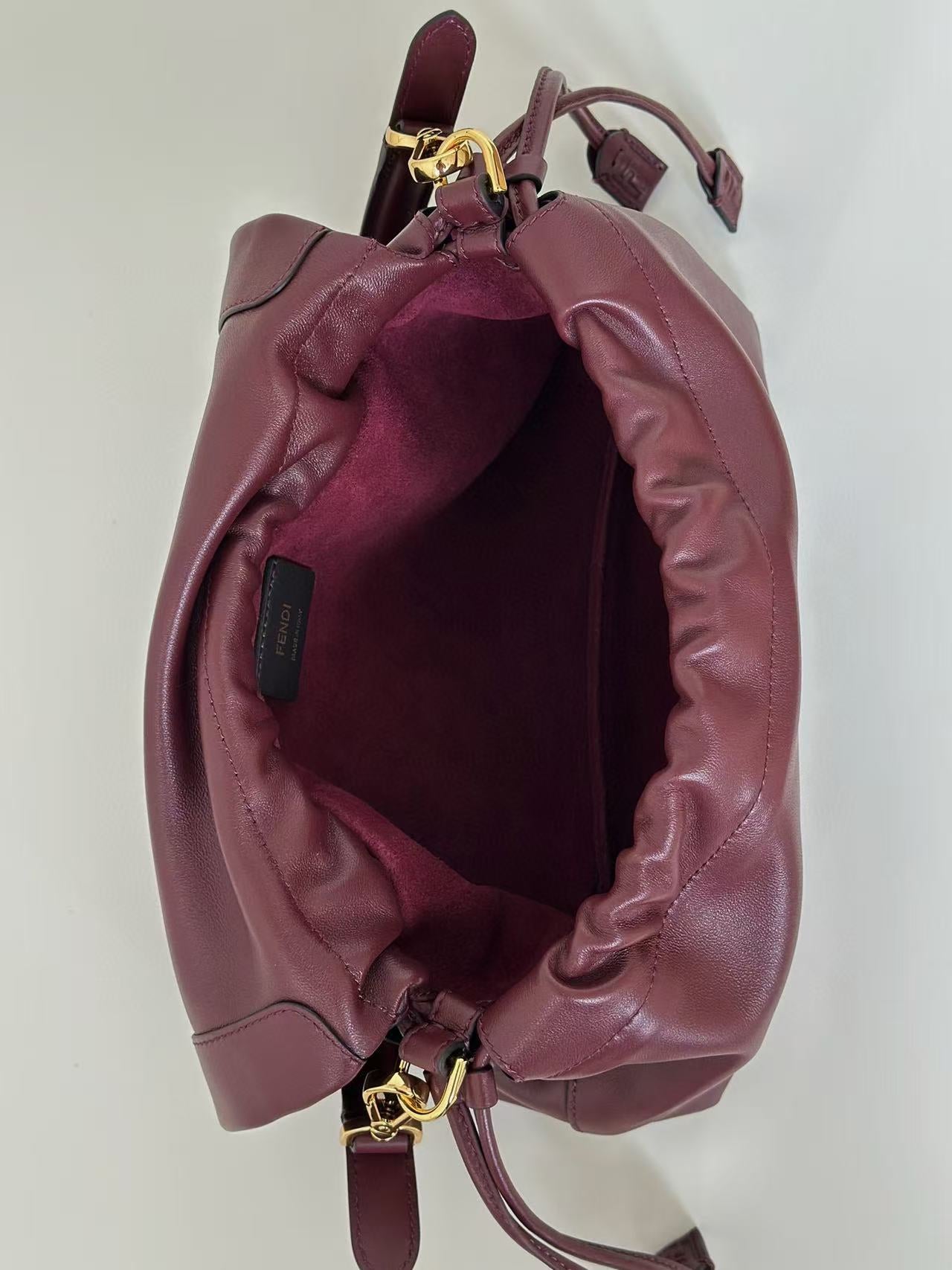 Fendi Mamma Baguette Drawstring Shoulder Bag Burgundy Nappa Leather