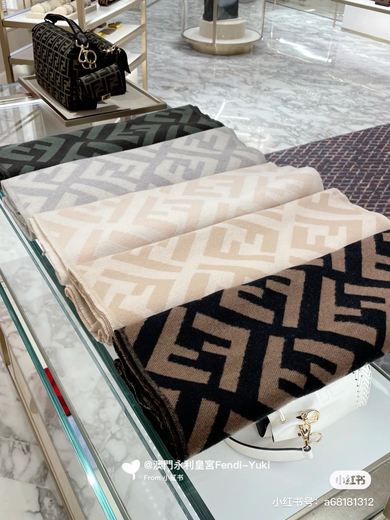 FF 170 CM SCARF IN BEIGE WOOL AND CASHMERE