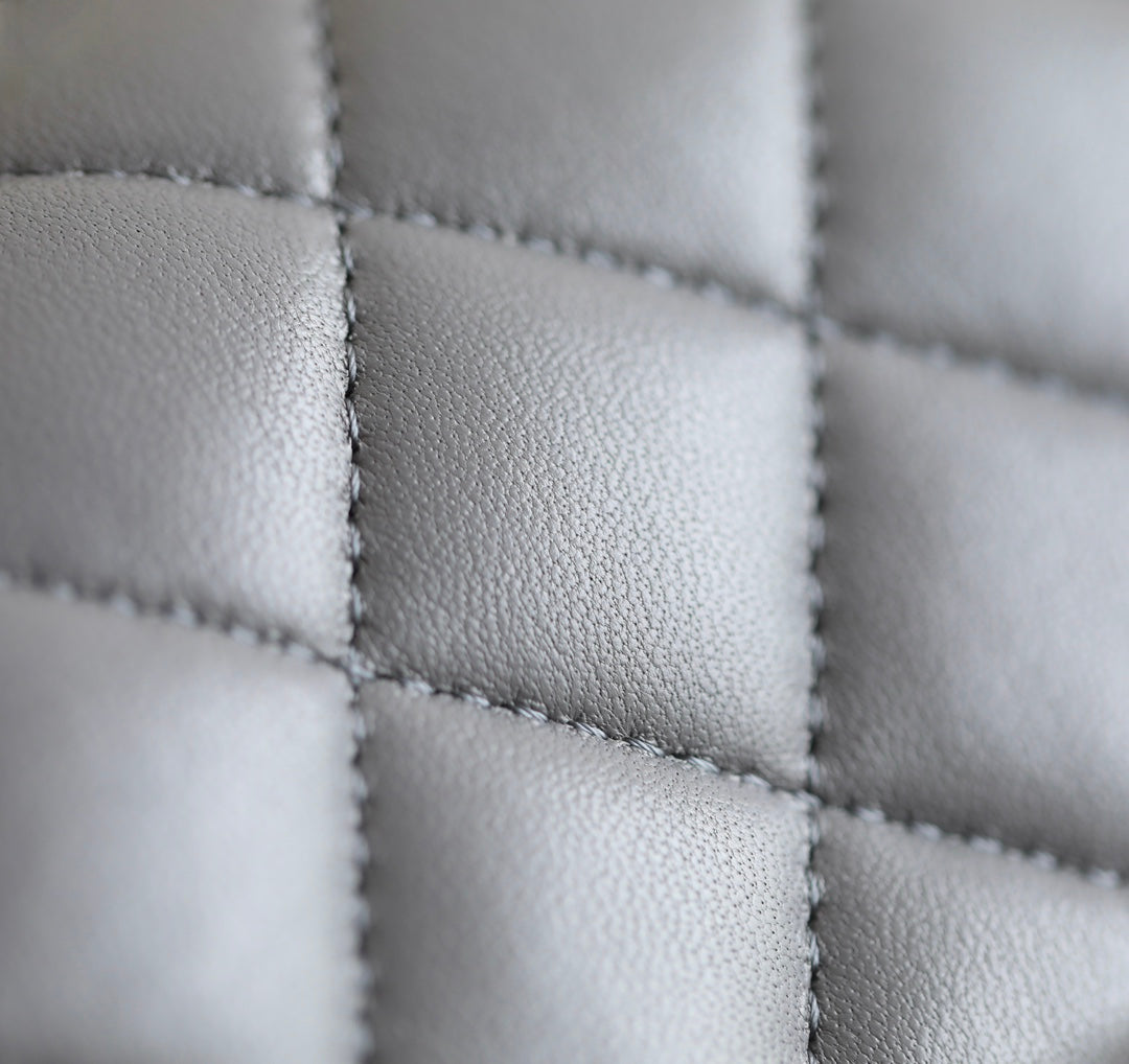 FLAP BAG 23 GREY LAMBSKIN GOLD HARDWARE TOP HAND