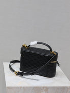 GABY MINI VANITY 18 IN BLACK QUILTED LAMBSKIN GOLD HARDWARE