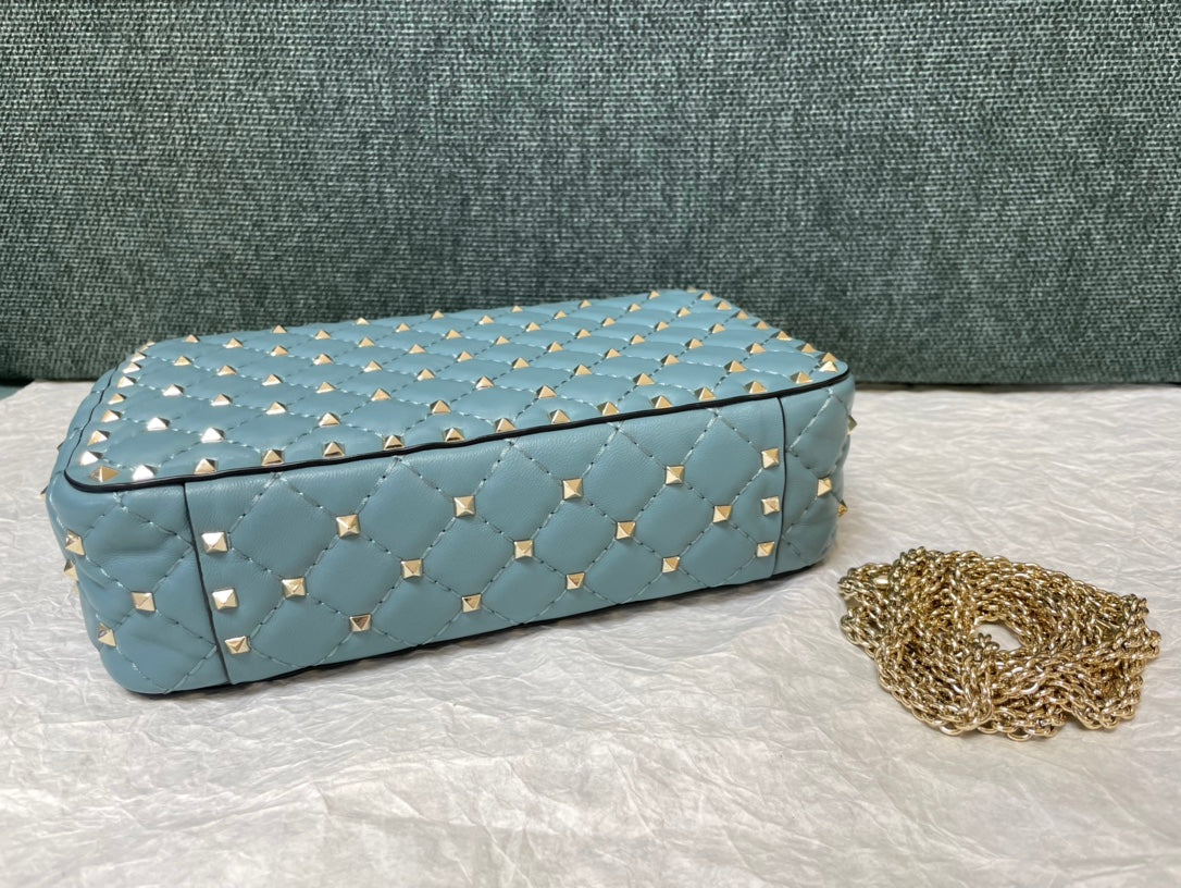 garavani rockstud spike medium 24cm azure lambskin