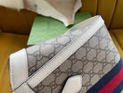 GG OPHIDIA 24 TOTE IN BEIGE CANVAS AND WHITE CALFSKIN