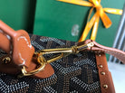 GRAND HÔTEL TRUNK BAG 24 IN BLACK GOYARDINE CANVAS AND TAN CALFSKIN