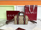 Gucci 25 GG Handbag Beige mix Dark Brown Canvas Leather 286711