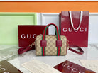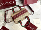 Gucci 25 GG Handbag Beige mix Rosso Ancora Red Canvas Leather 286710