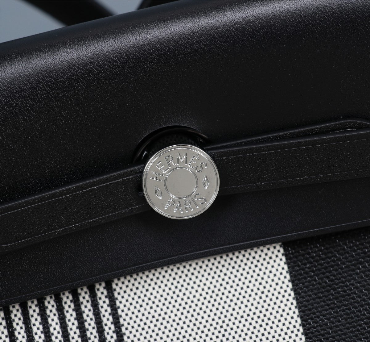 HM HERBAG ZIP 31 BLACK AND WHITE LINE MOTIF CANVAS