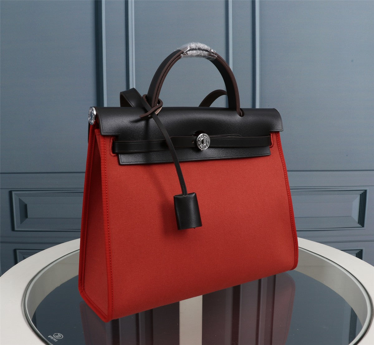 HM HERBAG ZIP 31 RED AND BLACK CANVAS