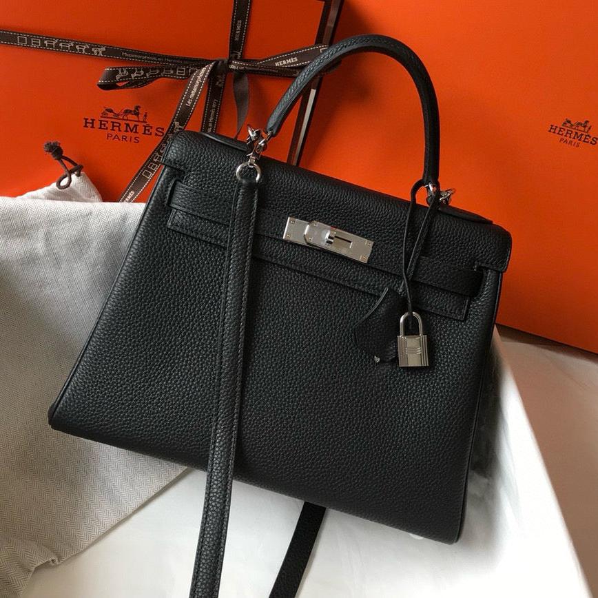 HM KELLY BLACK TOGO LEATHER SILVER HARDWARE