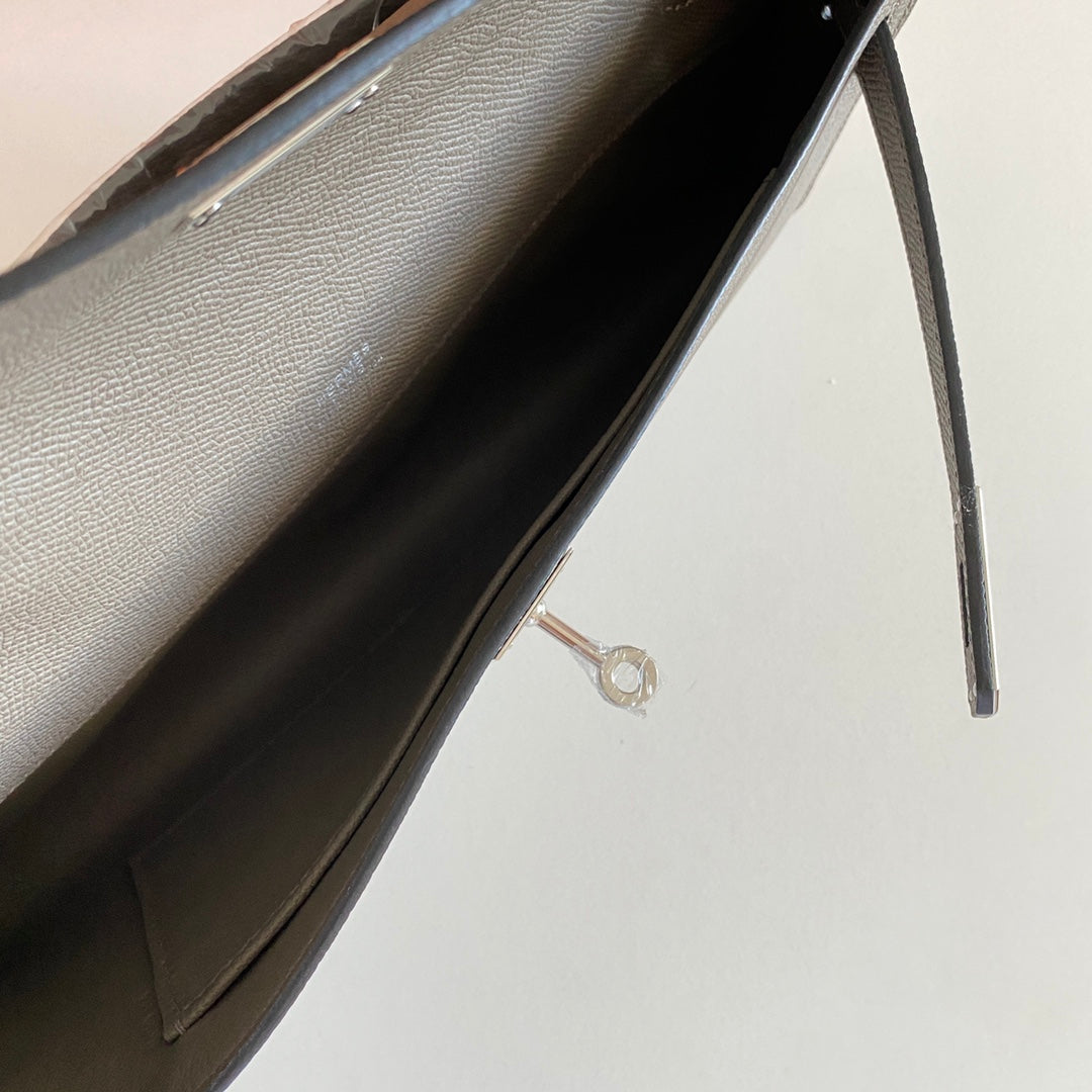 HM Kelly Cut 31 Fossil Gray Epsom Leather Silver Hardware 229053