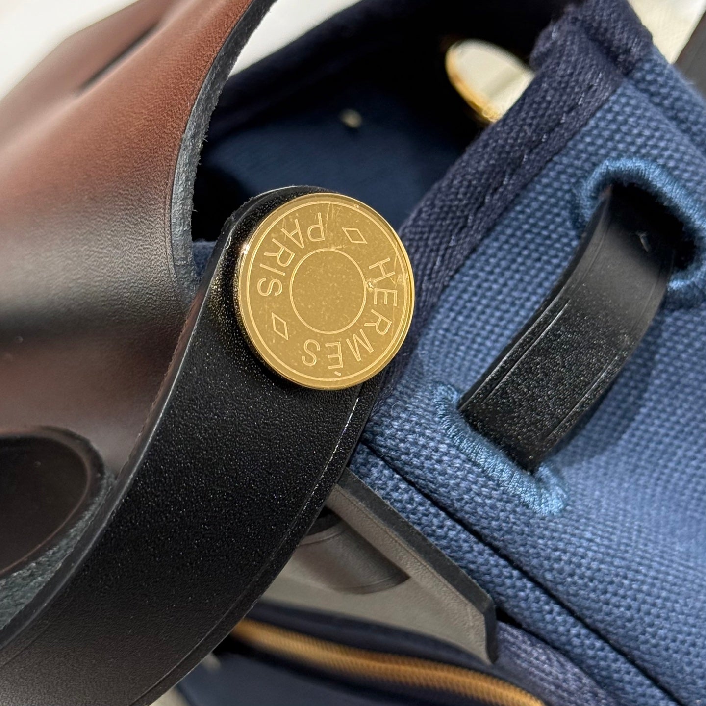 HM Mini Herbag Gold Buckle 20 Navy Blue Canvas and Hunter Cowhide 243255