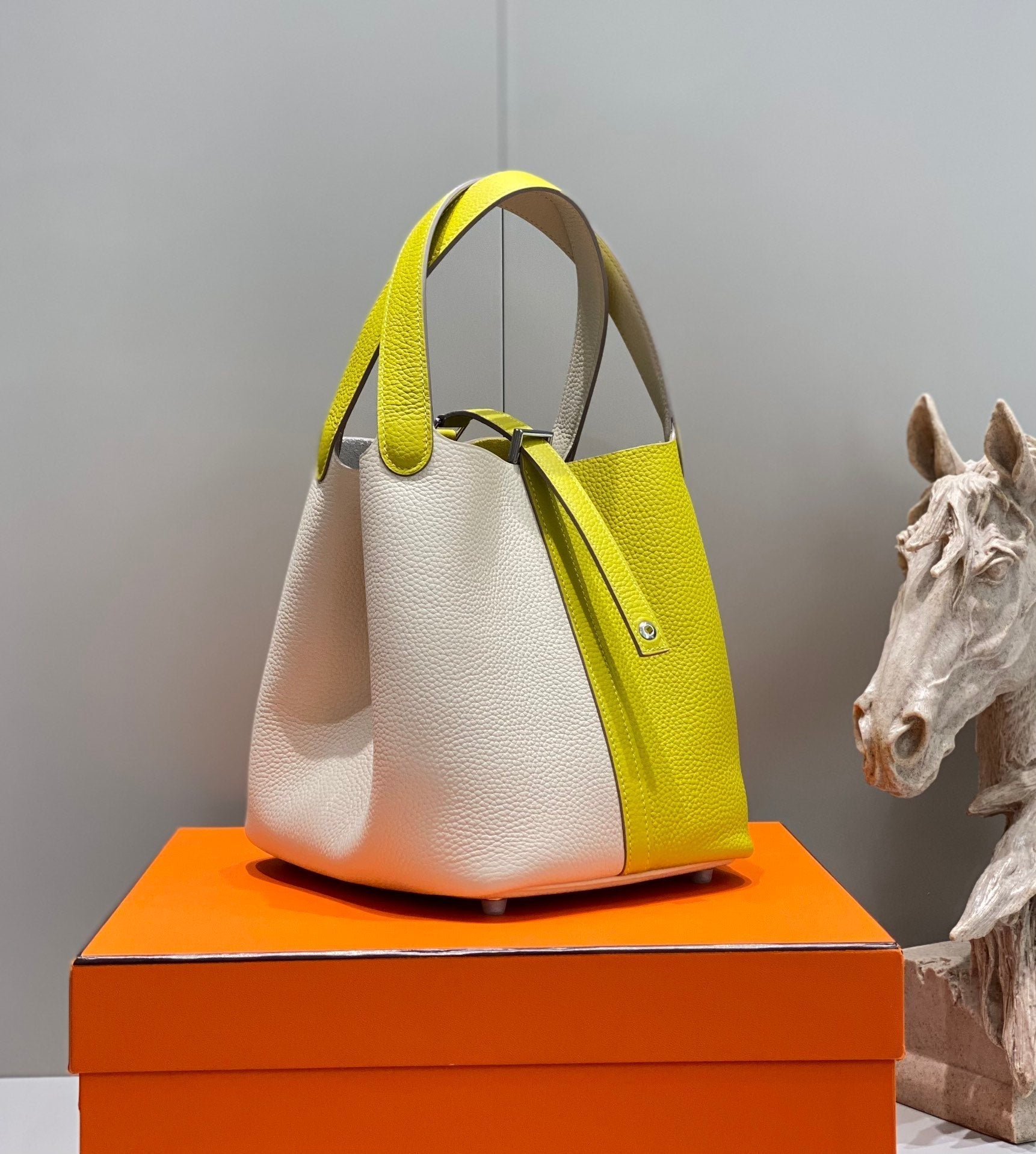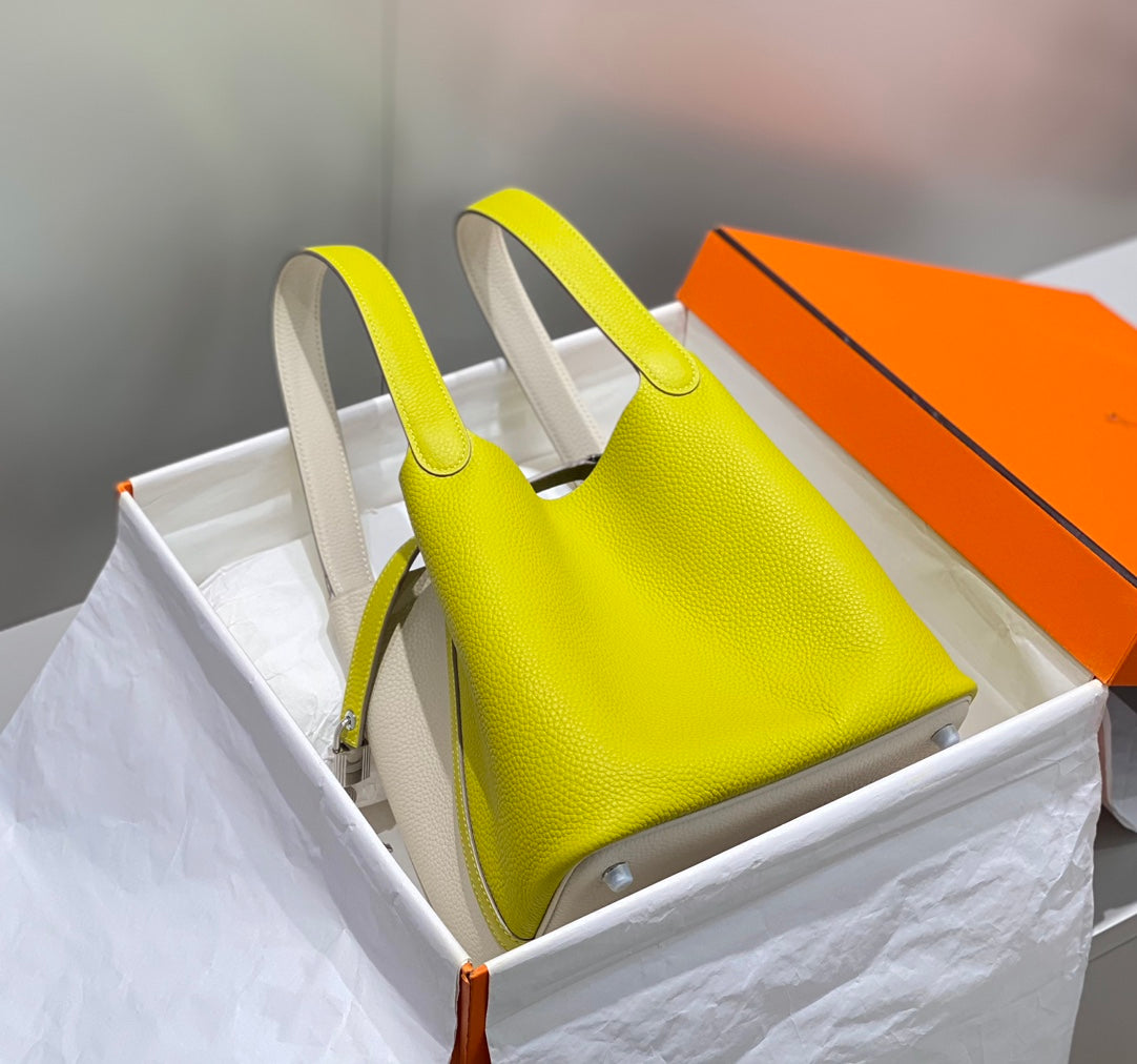 HM PICOTIN LOCK 22 WHITE AND CHARTREUSE TOGO LEATHER