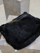 JAMIE 4.3 LARGE BAG 43 IN BLACK LAMB FUR GOLD HARDWARE