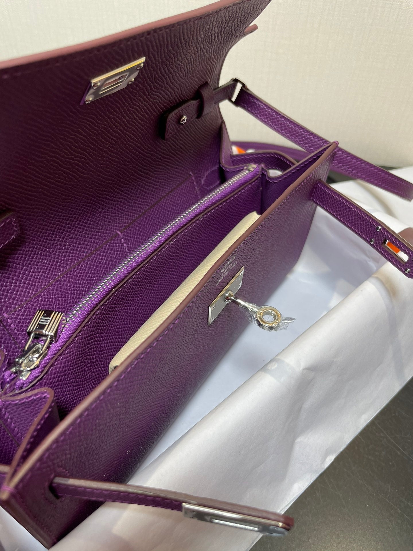 kelly to go wallet 20.5 purple epsom silver hardware
