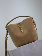 LE 37 SMALL BUCKET BAG 20 IN DIRT BROWN SUEDE