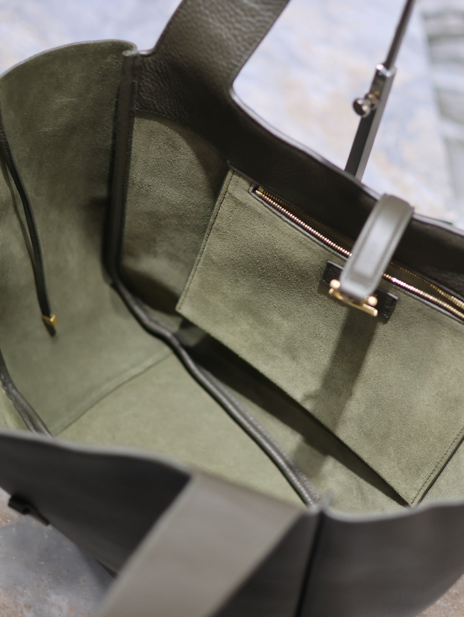 LE 5 À 7 BEA TOTE BAG 50 IN KHAKI GREEN LAMBSKIN COPPER LOGO
