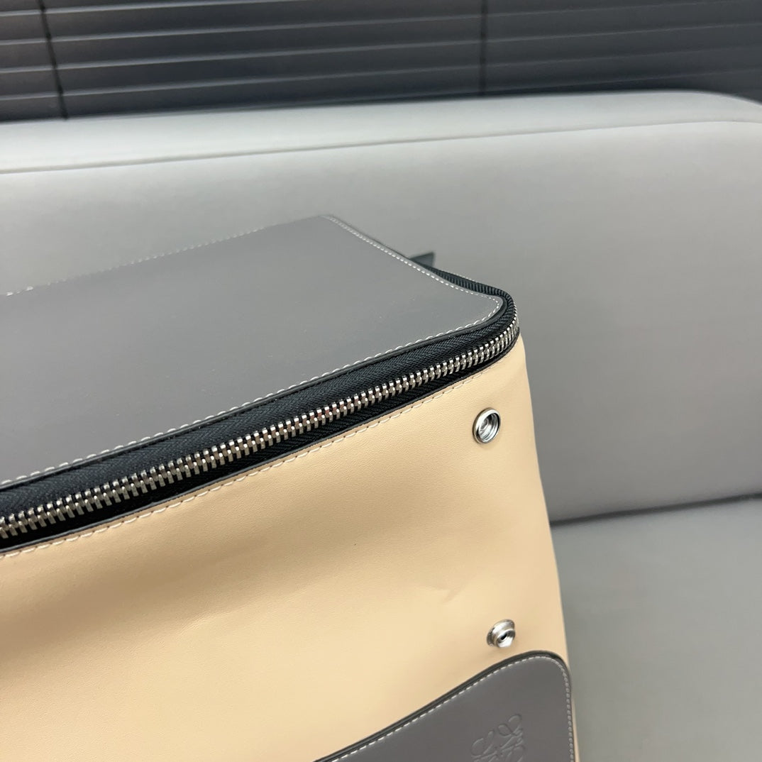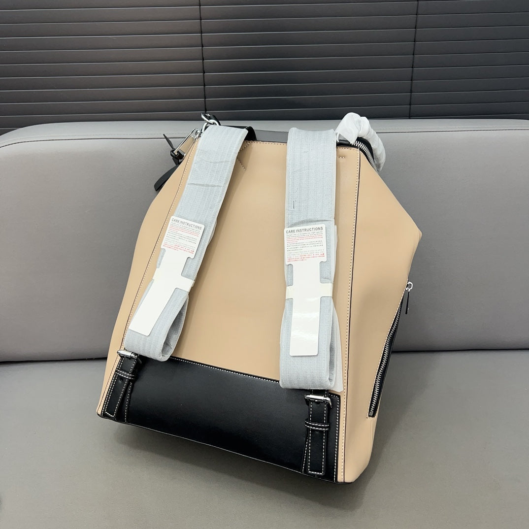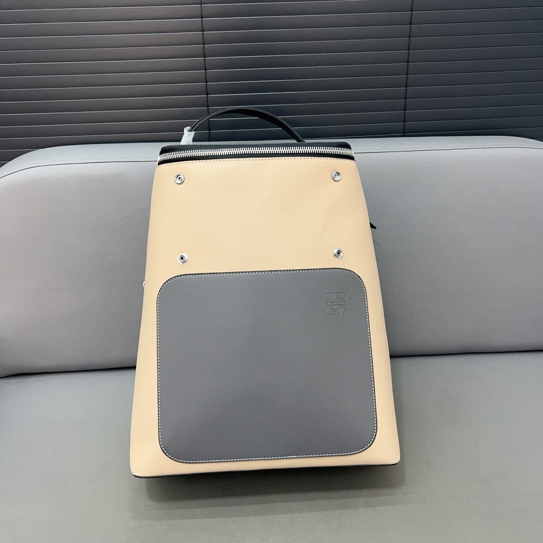 LOE GOYA BACKPACK 41 IN BLACK MIX BEIGE GRAINED CALFSKIN