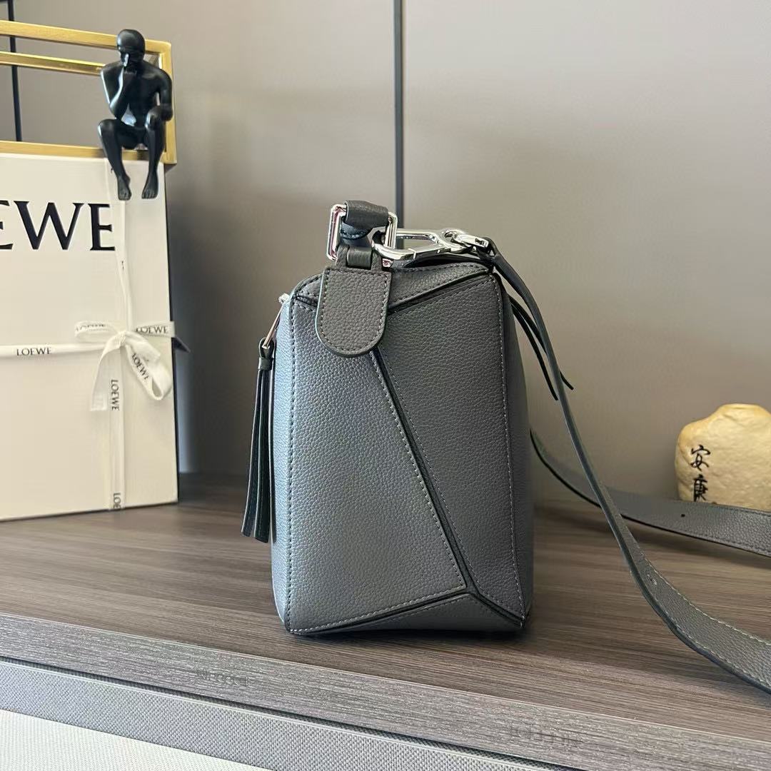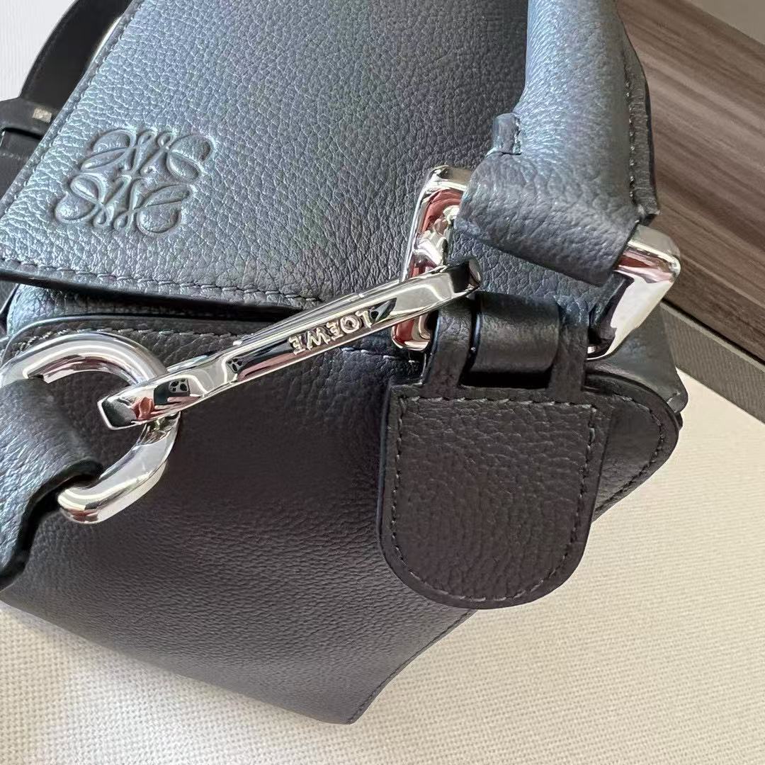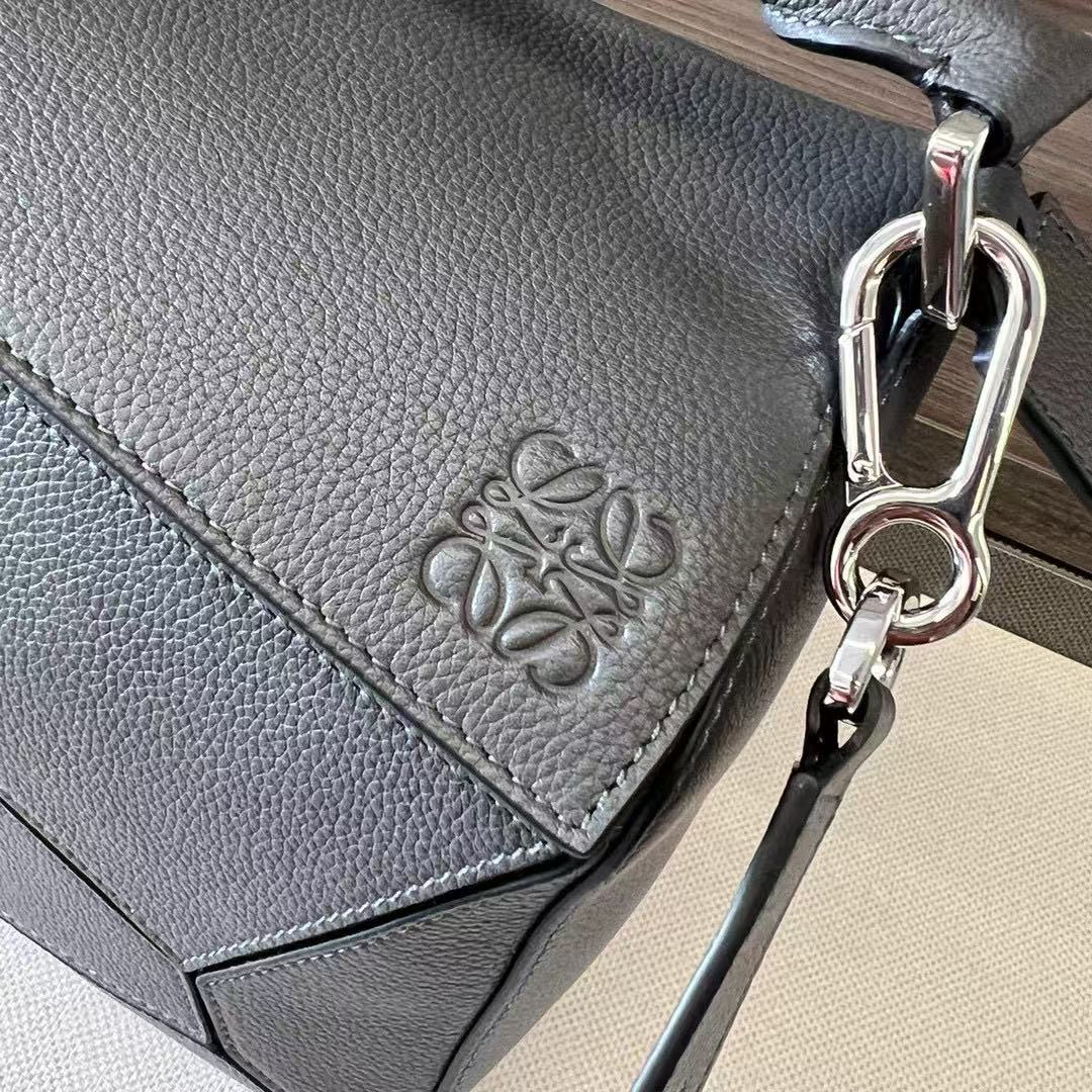 Loewe Puzzle Bag 29cm Black Silver White Soft Grained Cowhide
