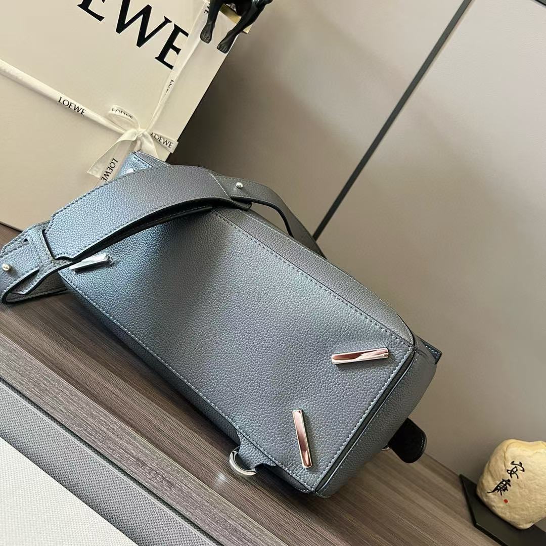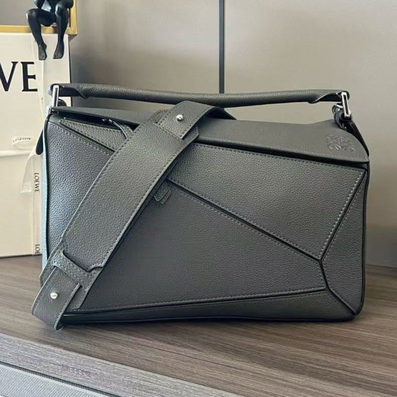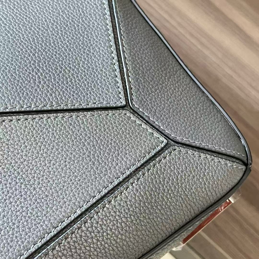 Loewe Puzzle Bag 29cm Black Silver White Soft Grained Cowhide