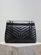 LOULOU LARGE 36 IN BLACK QUILTED CALFSKIN BLACK HARDWARE