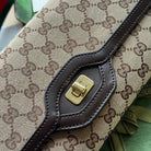 LUCE MEDIUM SHOULDER BAG 36 IN BEIGE CANVAS AND DARK BROWN CALFSKIN TRIM GOLD HARDWARE