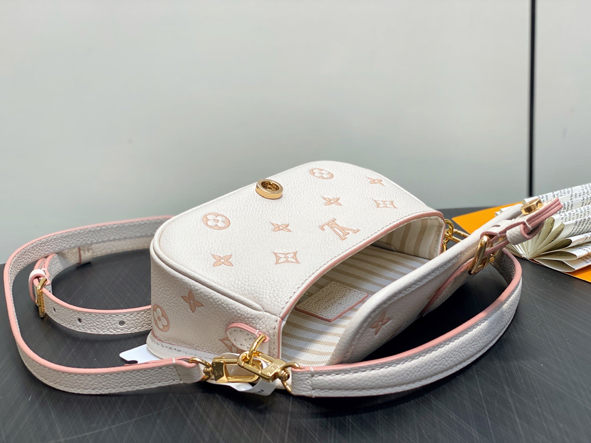 - Gold-toned hardware