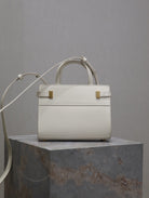 MANHATTAN SMALL TOP HANDLE BAG 21 IN WHITE CALFSKIN GOLD HARDWARE
