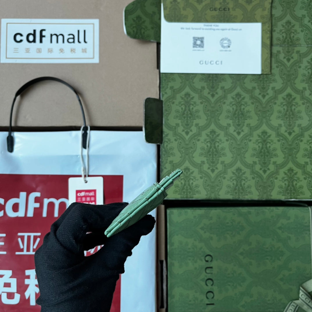 MARMONT QUILTED CARD CASE 10 IN LIGHT GREEN LAMBSKIN