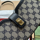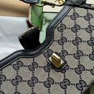 MOON SIDE SHOULDER BAG 24 IN BEIGE CANVAS AND BLACK LEATHER TRIM