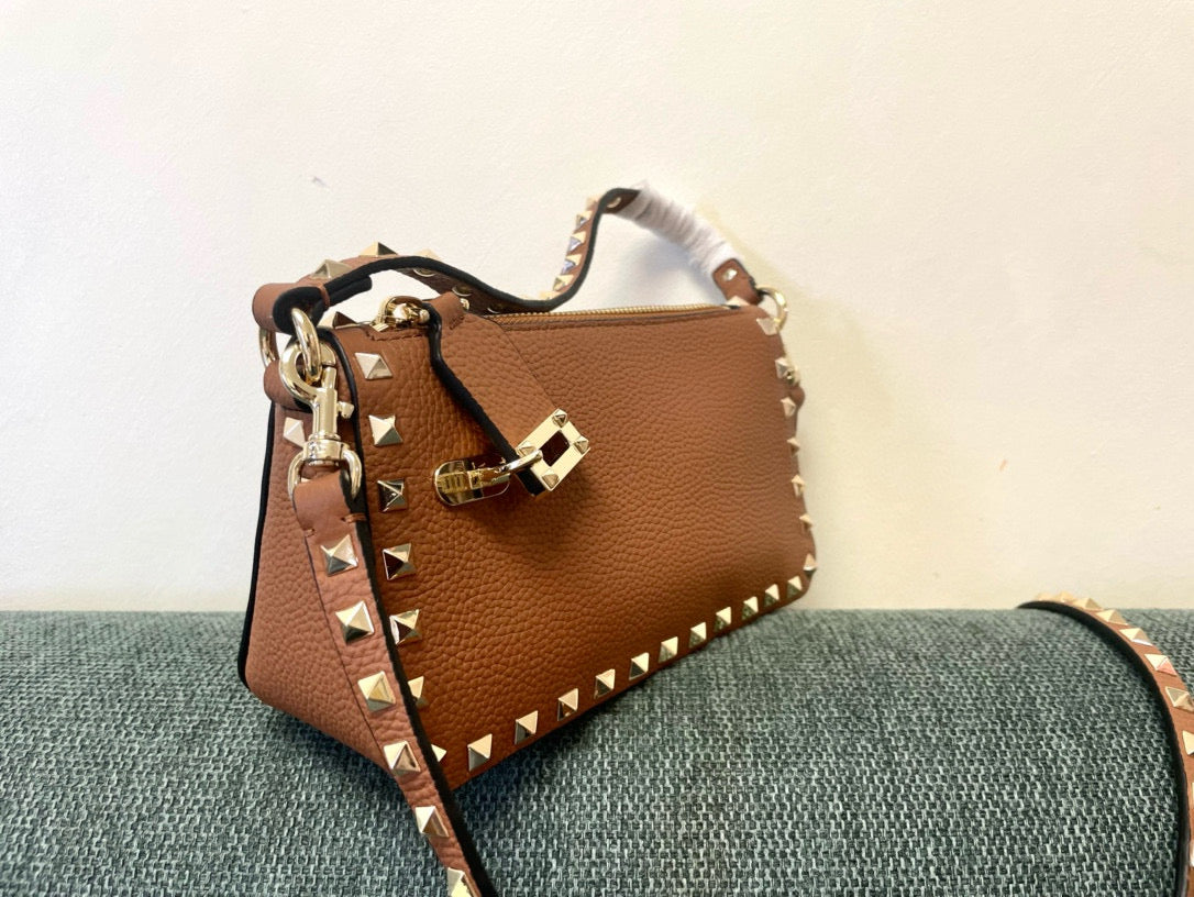 Small Rockstud Bag 19cm Brown Grainy Calfskin