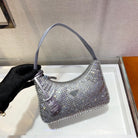 SPARKLING HOBO BAG 23 IN SILVER NYLON ATTACHED FULLY CRYSTALS