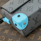 STEAMER 18 IN GUN METAL MONOGRAM ECLIPSE CANVAS MIX TURQUOISE CALFSKIN