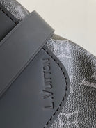 STEAMER BACKPACK 45 IN GUN METAL MONOGRAM ECLIPSE CANVAS AND BLACK CALFSKIN SILVER BUCKLE