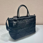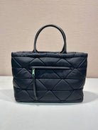 TRIANGLE PATTERN TOTE BAG 33 IN BLACK QUILTED RE-NYLON