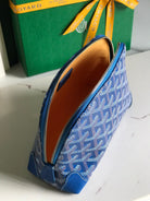 VENDÔME COSMETIC POUCH 17 IN SAPPHIRE BLUE GOYARDINE CANVAS AND CALFSKIN TRIM