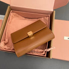 WALLET 12 IN SANTA FE BROWN SMOOTH CALFSKIN GOLD HARDWARE