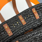 YSL PANIER BAG 55CM BLACK CROCHET RAFFIA TAN CALFSKIN