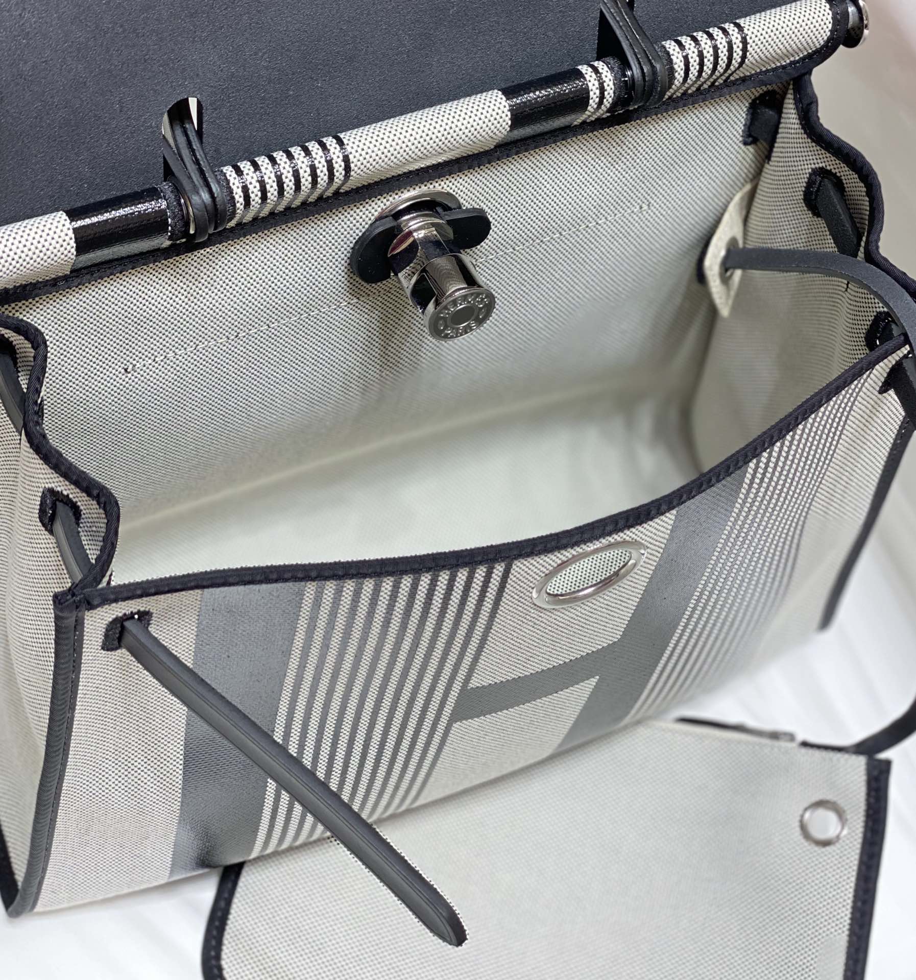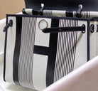 Herbag 31 Toile White Black Canvas Black Cowhide Leather