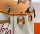 HM Pegase Pop Herbag Zip 31 White Blue Canvas Black Cowhide Leather