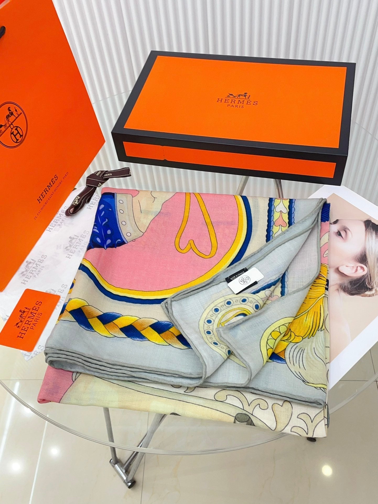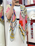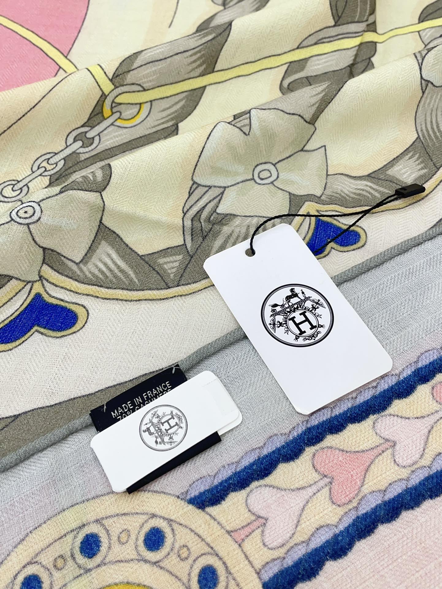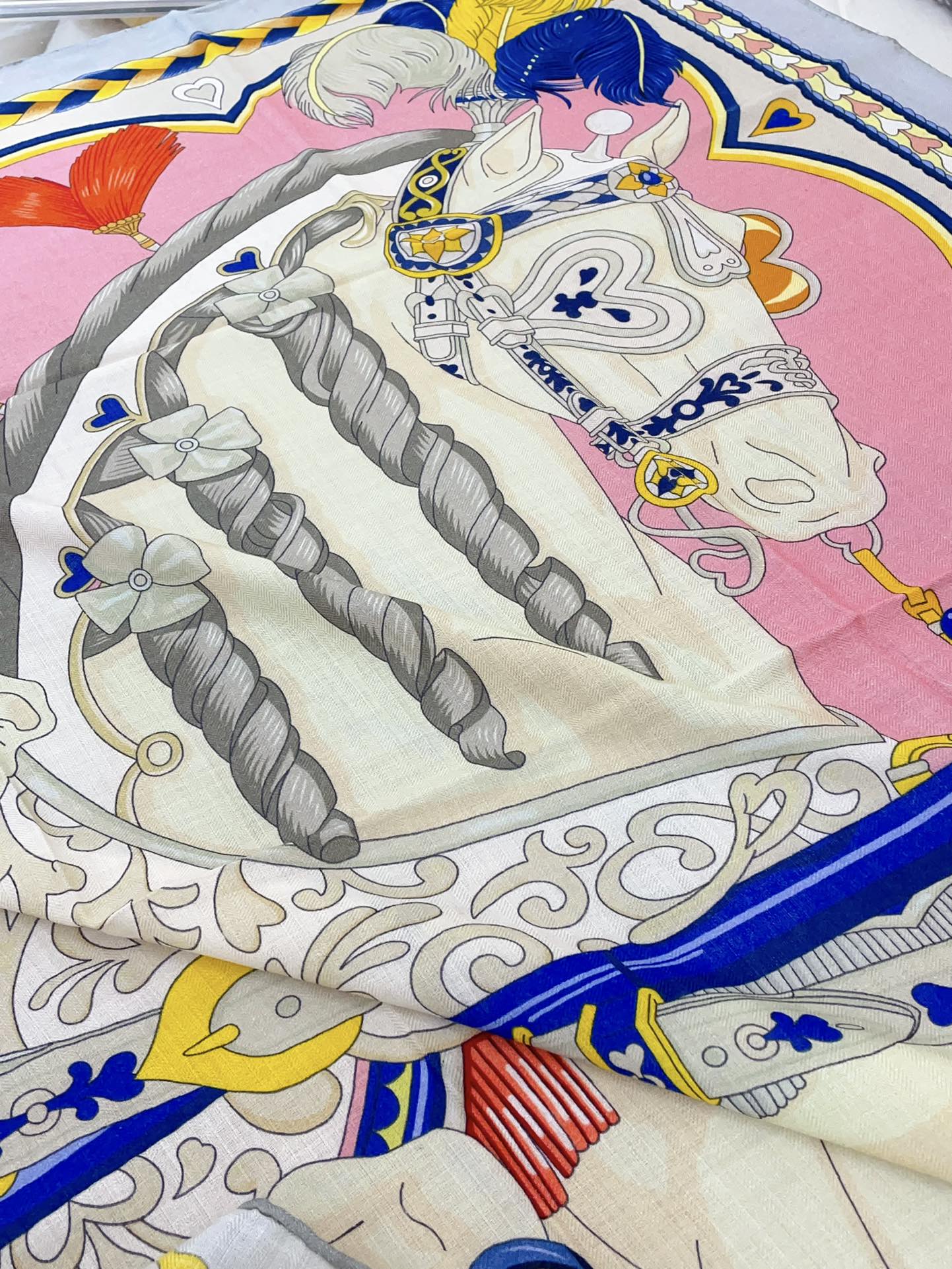 Carré Harnais De Cœur Scarf 140 CM In Pink Colorful Cashmere And Silk 335857