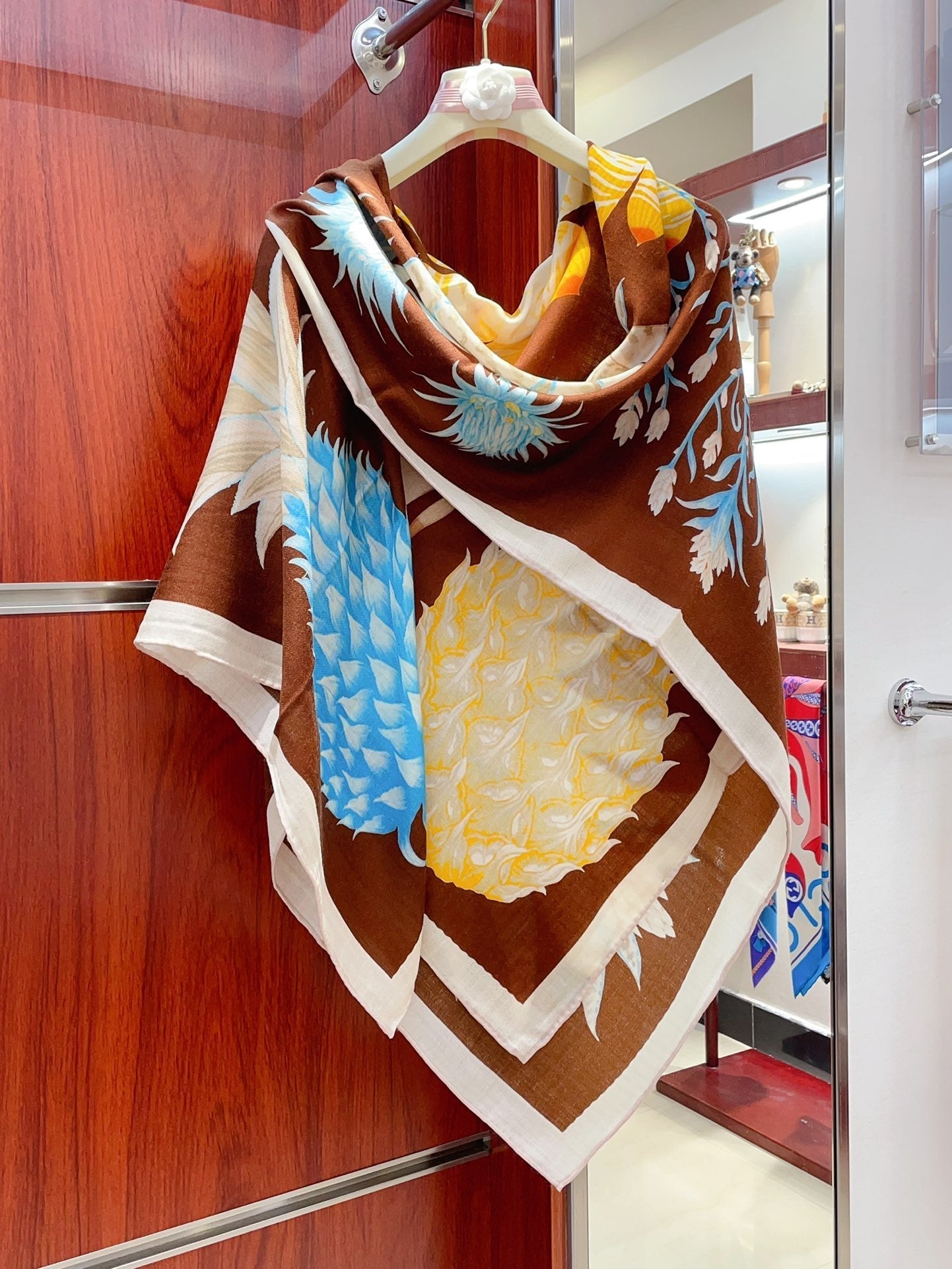 Carré Index Bromeliaceae 135 CM In Brown Colorful Silk Cashmere 228991