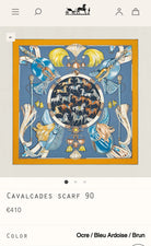 Cavalcades Scarf 90 CM In Blue Yellow Colorful Silk Twill 288859