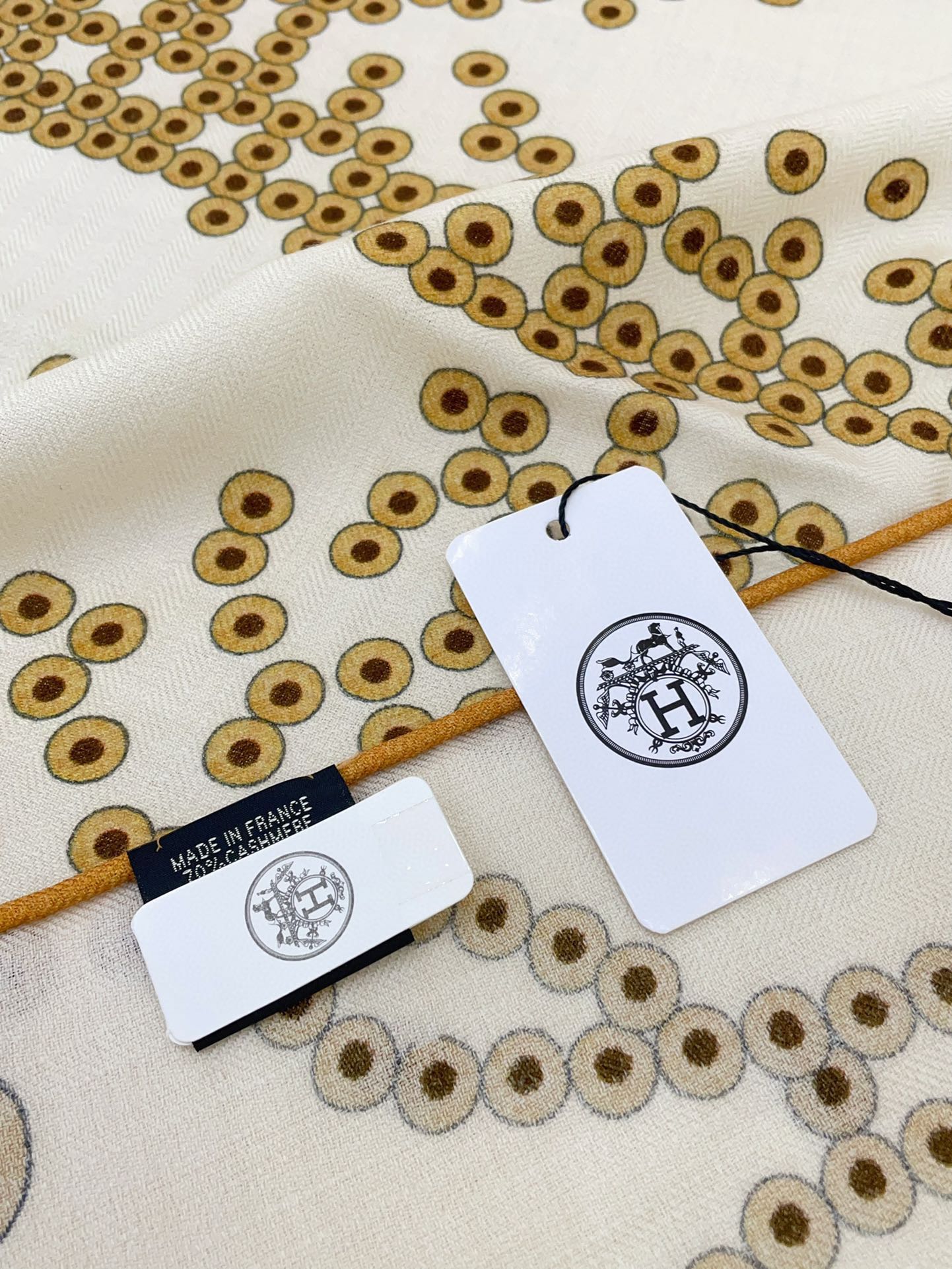 Cheval De Legende Scarf 140 CM Ivory White Pattern Cashmere And Silk