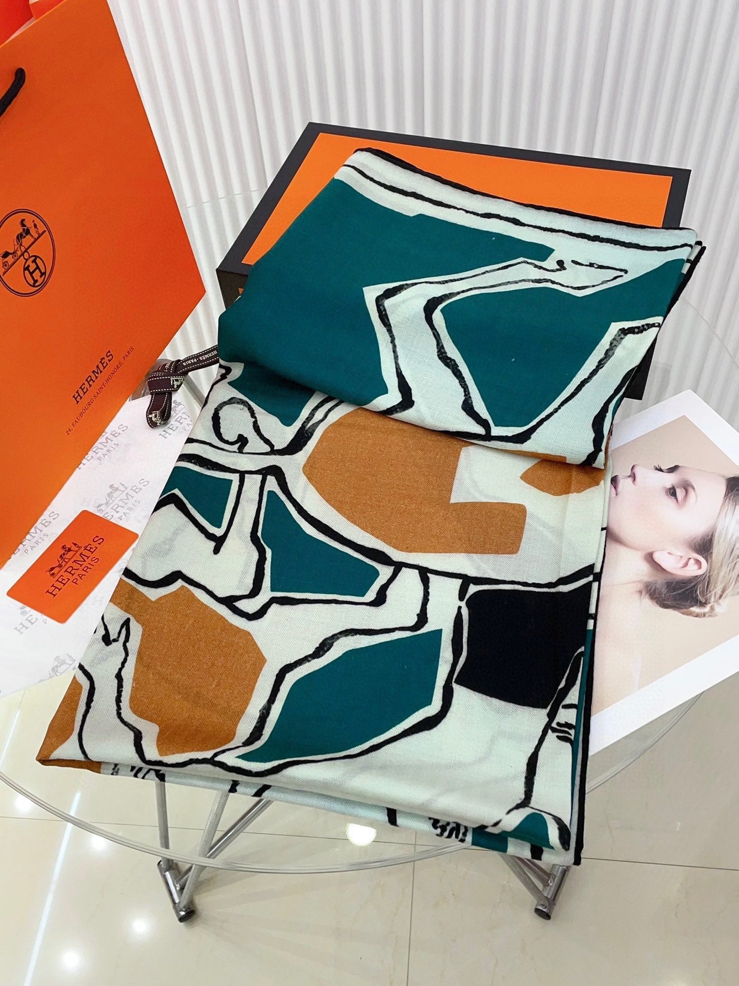 Choregraphie Equestre Pareo Scarf 140 CM Teal Blue Colorful Cashmere And Silk 393171
