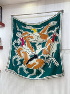 Choregraphie Equestre Scarf 140 CM Teal Blue Colorful Cashmere And Silk 393171
