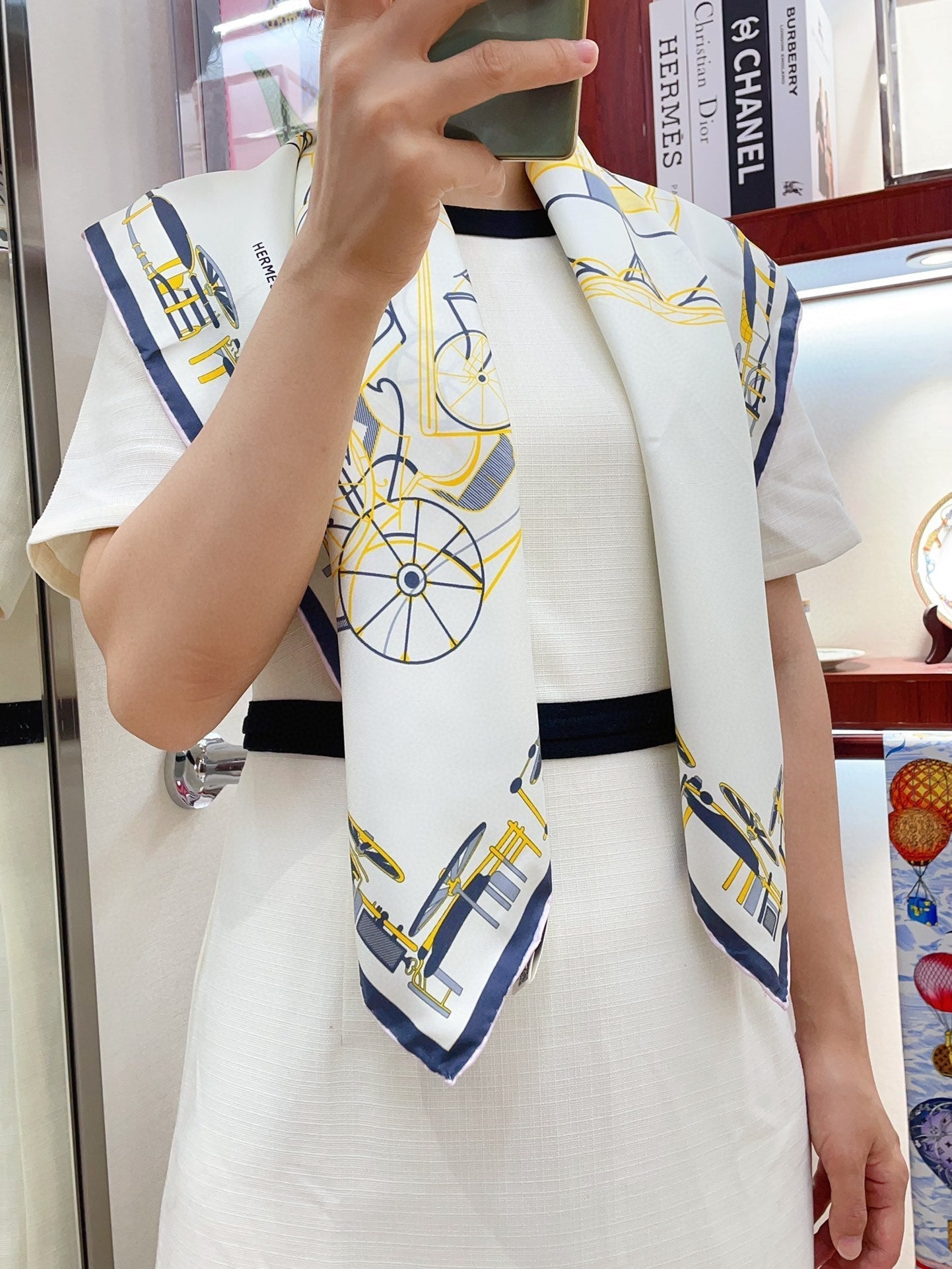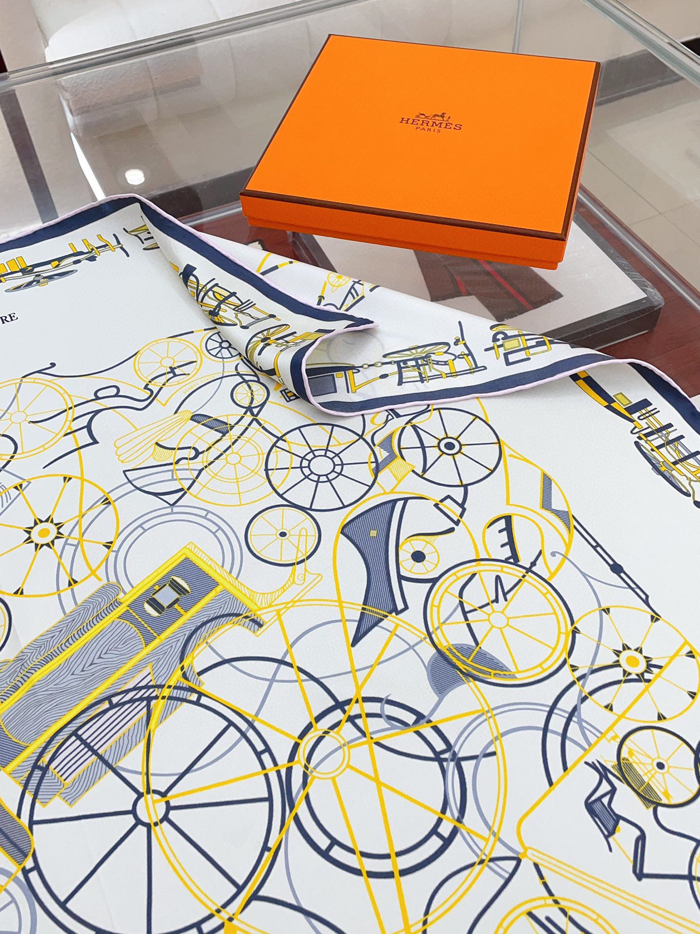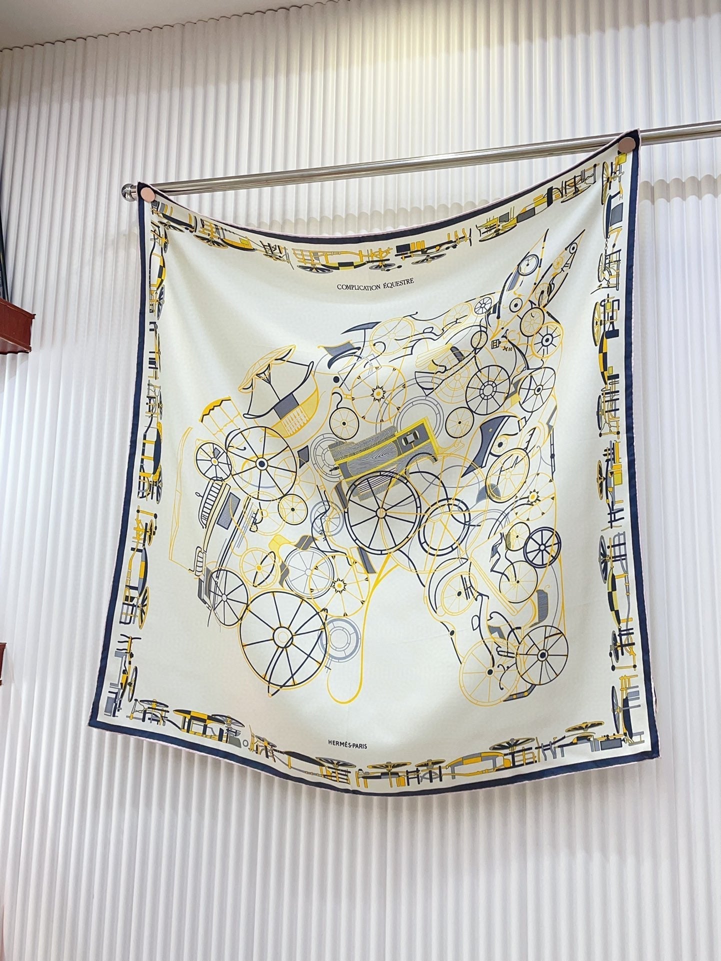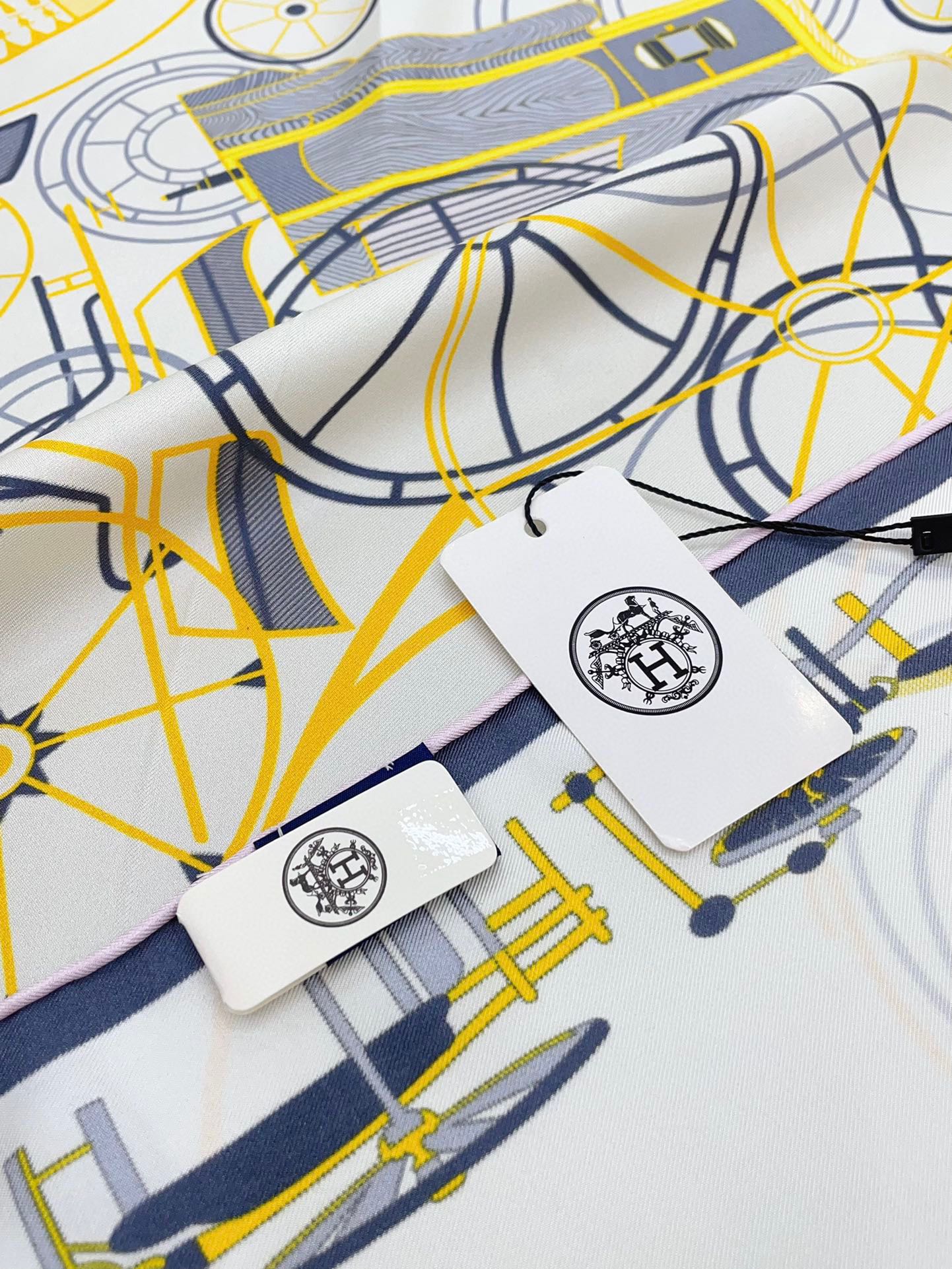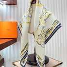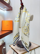 Complication Equestre Scarf 90 CM In White Yellow Coloful Silk Twill 345898