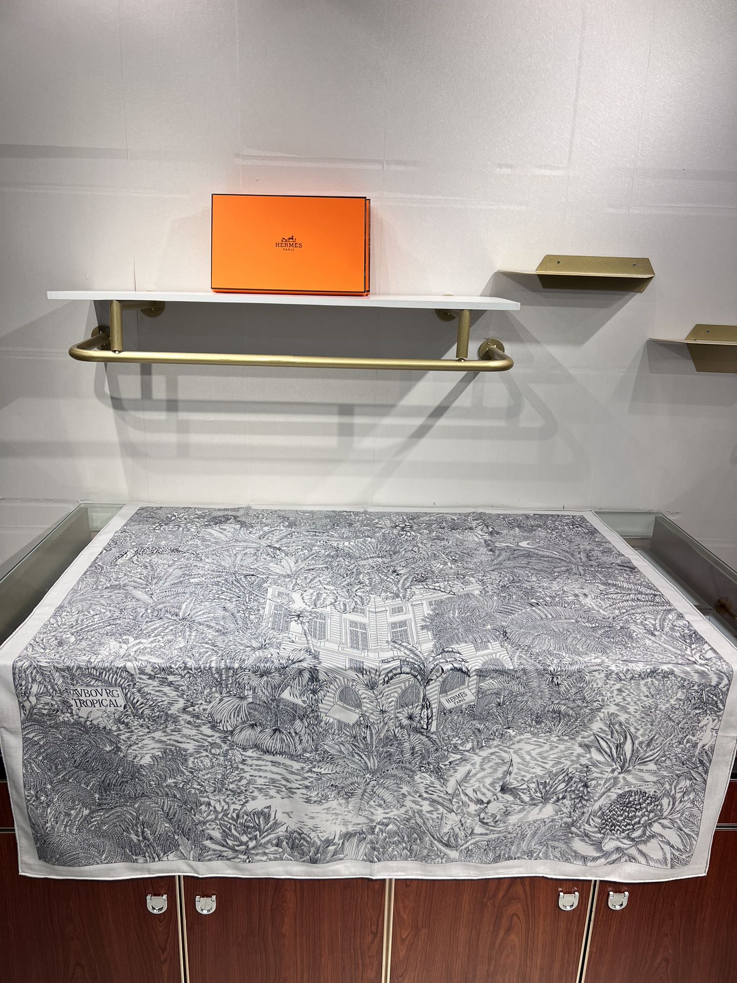 Faubourg Tropical Scarf 135 CM Grey White Cashmere And Silk