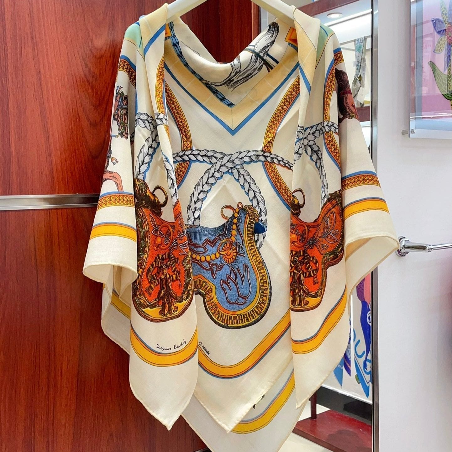 Grand Apparat Forever Scarf 140 CM In White Colorful Cashmere And Silk 378466